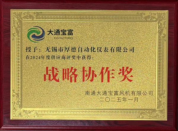 精誠協(xié)作,共赴輝煌:厚德儀表榮獲南通大通寶富風機有限公司戰(zhàn)略協(xié)作獎