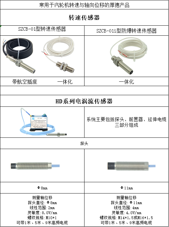 我公司自主研發的轉速傳感器和HD系列電渦流傳感器,為汽輪機的轉速與軸向位移監測提供了強有力的支持。憑借其高精度、高靈敏度的測量性能,這兩款產品能夠幫助運行人員實時掌握汽輪機的運行狀態,提前發現潛在隱患,制定科學的維護策略,優化運行參數,從而有效提升汽輪機的安全性和可靠性,助力企業實現可靠穩定的生產目標。